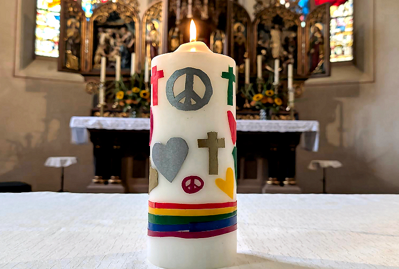 In der Wortgottesfeier des Pfarrgemeinderates zum Thema "Frieden" wurde die Kerze erstmalig entzündet.