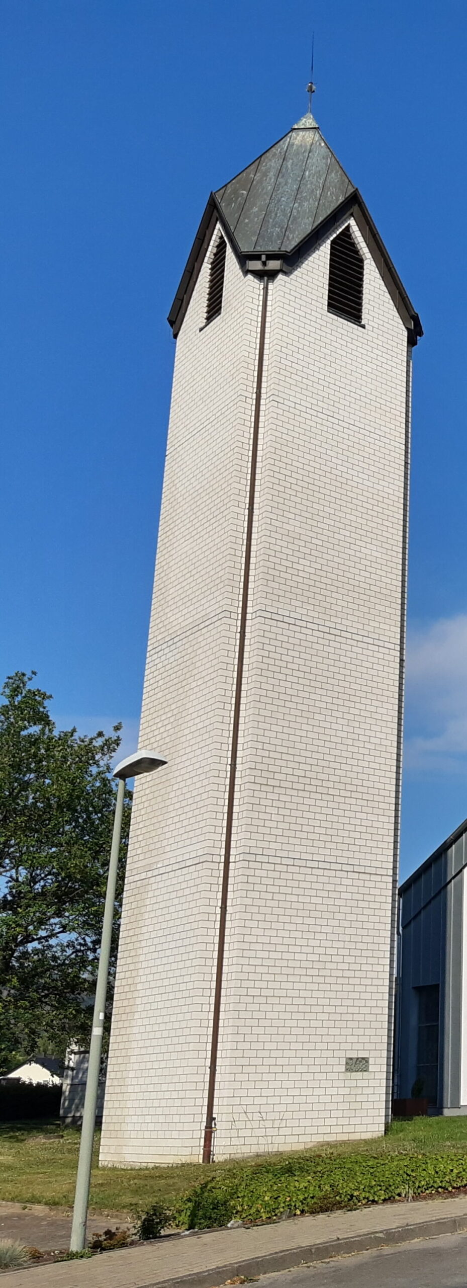 Im Sommer 1995 wurde auf einer Grundfläche von 4×4 Meter ein 22 Meter hoher Glockenturm vor der Kirche errichtet. Der Wetterhahn wurde in der Werkstatt der Benediktiner-Abtei Königsmünster in Meschede hergestellt und hat eine Höhe von einem Meter. Die Glocken wurden am 6. Oktober 1995 in Gescher von der Firma Petit & Gebr. Edelbrock im Münsterland gegossen. Am 1. Adventsonntag, den 3. Dezember 1995 wurden die drei Glocken, der Grundstein und der Kirchturm durch Herrn Weihbischof Paul Nordhues aus Paderborn feierlich eingeweiht.